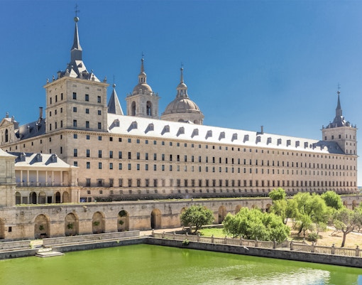 Machen Sie eine Tour durch dieses strenge königliche Kloster und Pantheon. Die Ausläufer der Sierra sorgen für winterliches Drama. Planen Sie Zeit für den Fußmarsch vom Bahnhof bergauf ein.