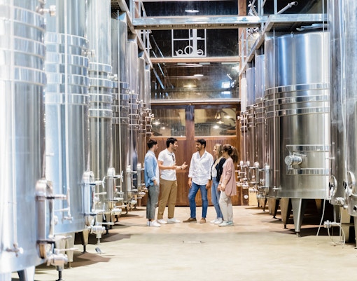 Alcoholvrij druivensap geserveerd tijdens het vroege oogstseizoen. Verfrissend en kindvriendelijk.