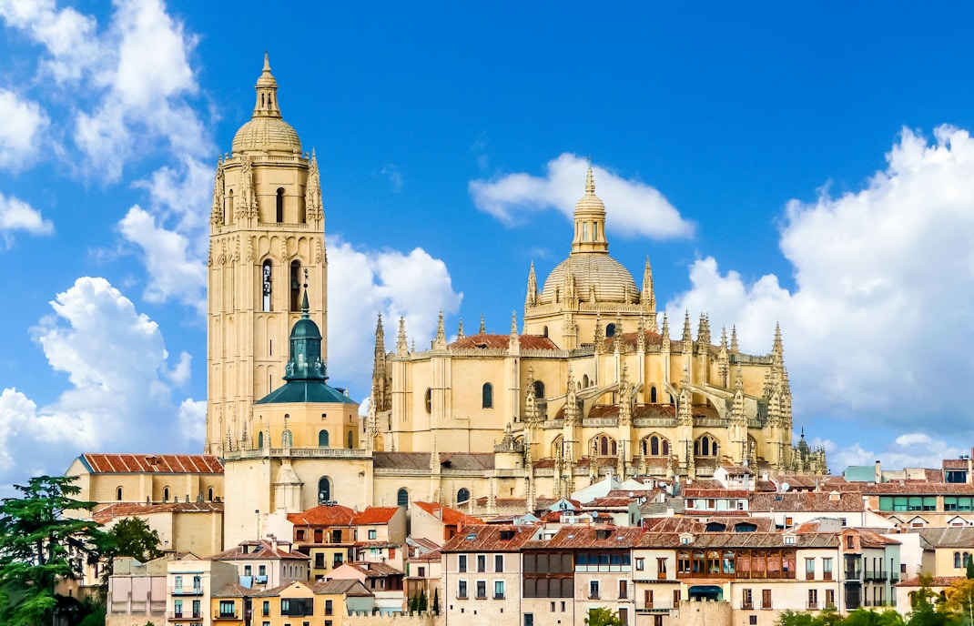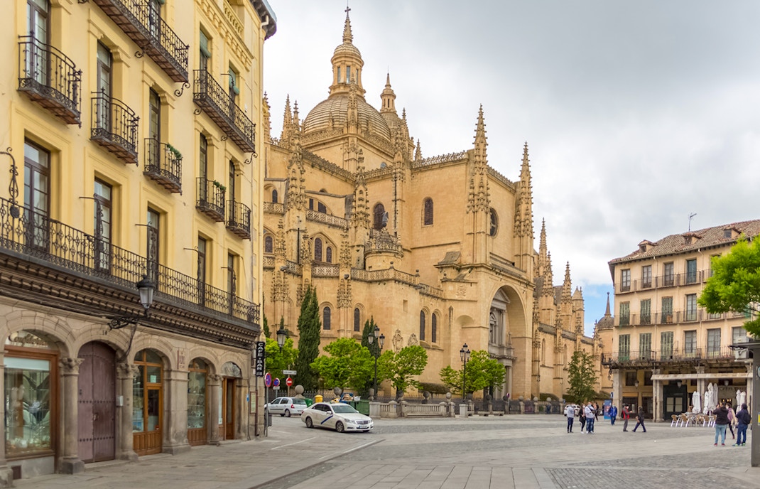 Katedralen i Segovia kallas ofta för Europas sista stora gotiska katedral. Byggnaden uppfördes på 1500-talet, när renässansen redan svepte genom Spanien, och anammade medvetet den gotiska stilen med höga spetsiga bågar, ribbvalv och flygande stödpelare. Den ljusa interiören känns rymlig men ändå graciös, en kontrast till de mörkare gotiska kyrkorna från tidigare århundraden.